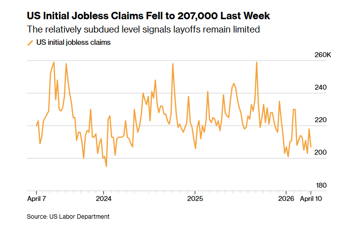 Bloomberg – US Jobless Claims Fall to 207,000, Signaling Low Layoffs