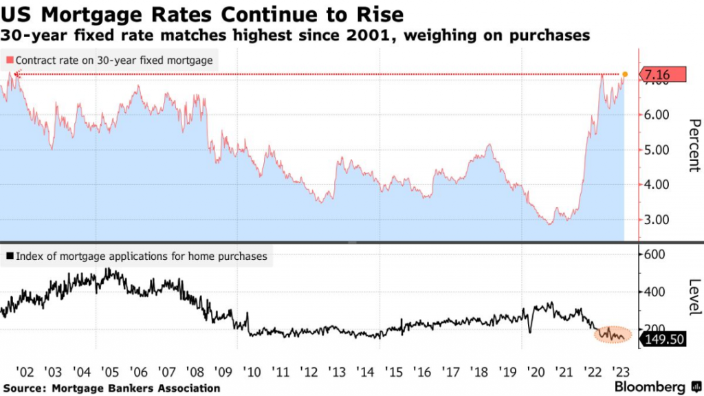 来源:Bloomberg – US Mortgage Rate Climbs to 7.16%, Matching Highest Since 2001
