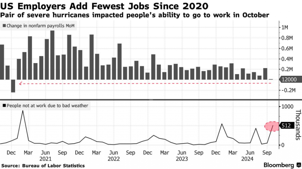 美国劳工统计局今天发布的数据显示,10月非农就业人数只增加了1.2万人,创下了2020年来最慢增长速度,过去2个月的招聘情况差于预期。
