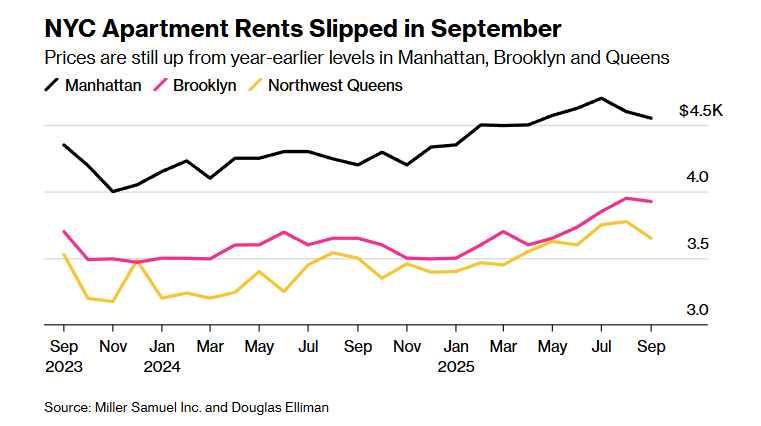 今年以来,纽约租房市场竞争异常激烈,连续四个月创下租金纪录。9月价格小幅回落属季节性常态,通常在大学生与应届毕业生完成搬迁、市场需求降温后出现。Miller Samuel总裁Jonathan Miller表示:“从8月到9月的租金下调并不意味着租赁市场正在变得更可负担,这更多是季节性波动。”