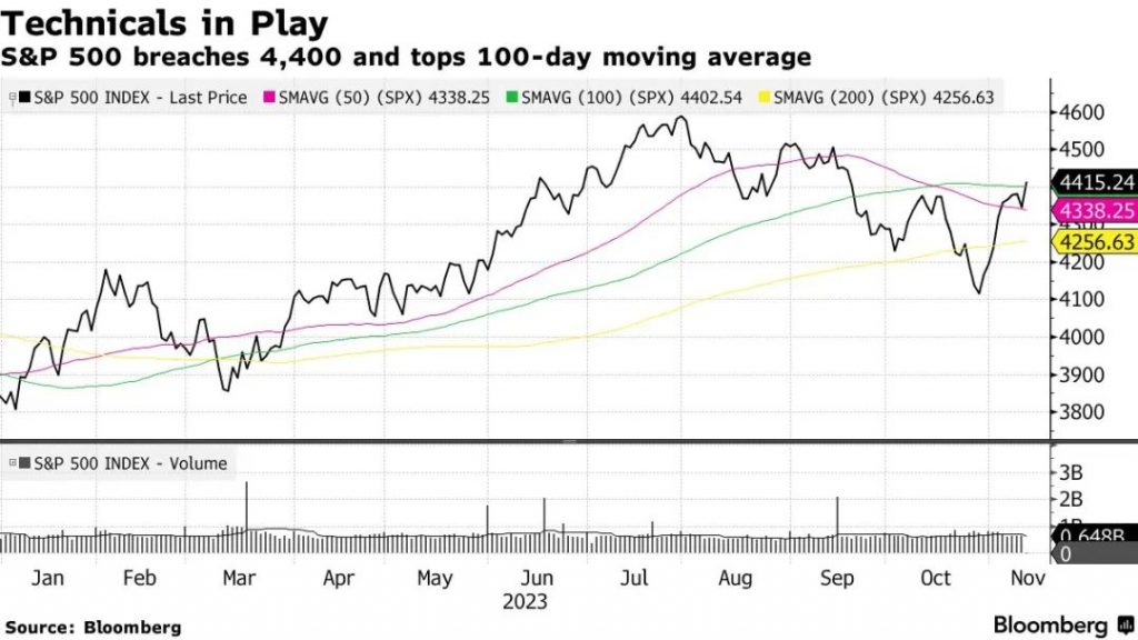 受益于标普500指数内最大几个企业的优异表现,今天标普500突破了4,400点以及100天的移动平均值,这是一个技术面利好的信号。