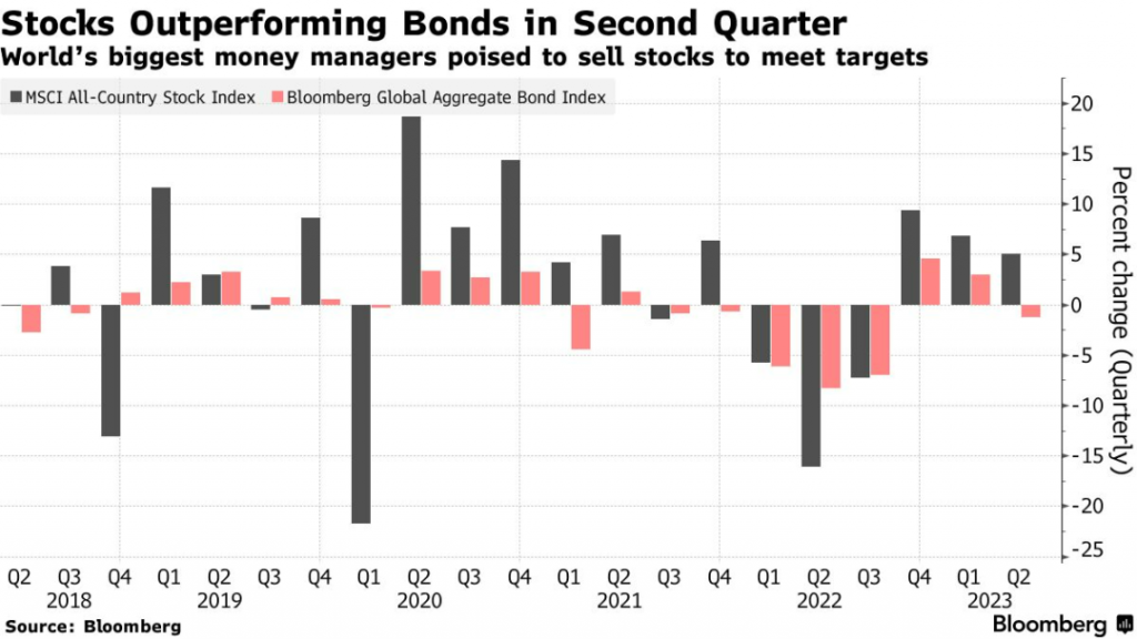 退休基金和主权基金需要维持一定的股票和债券投资比例,定期需要调整