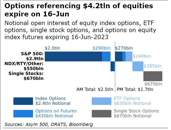 根据衍生物分析公司Asym 500创始人洛基·费诗曼(Rocky Fishman)预计,本周五将有$4.2万亿股票和指数相关的期权到期,比去年同期高出20%。