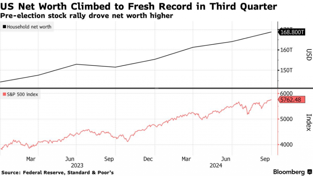 来源:Bloomberg – US Household Wealth Climbs to a Record on Higher Stock Values