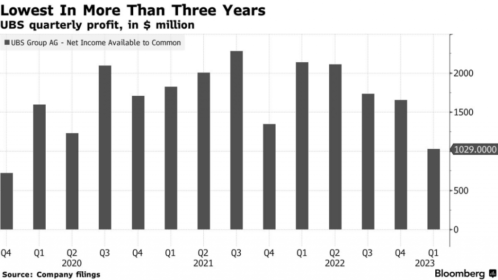 瑞银(UBS)最新季报显示,第一季度净利润为$10.3亿,低于预期的$18.6亿。其中财富管理部门收入为$47.9亿,投行收入为$24.3亿,均略低于预期。