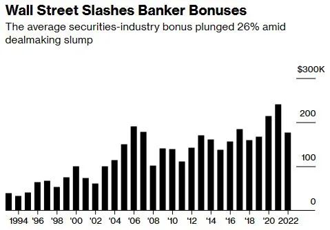 根据纽约州检察官(Thomas DiNapoli)分析,2022年华尔街奖金总额年同比缩水21%至$337亿美元。这也意味着纽约证券行业员工的平均奖金跌到了$17.6万美元,创下了2019年来最低。