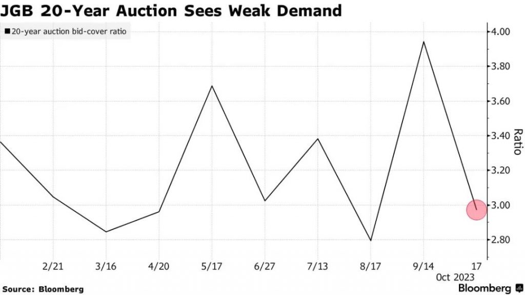 本周二,日本政府举办了¥1.2万亿日元($80亿美元)20年期主权债的拍卖会,不过当地银行和人寿保险公司并没有展现很浓厚的购买兴趣。