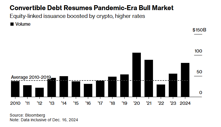 来源:Bloomberg – Crypto and Rates to Drive US Convertible Debt Growth in 2025