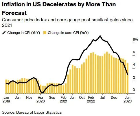 今天,美国劳工统计局发布的最新数据显示,6月美国CPI指数年同比上涨3%,创下了两年多以来最小涨幅。此外,CPI相比5月高出0.2%,低于经济学家的预期。