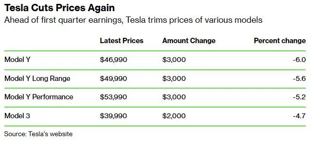 1. 特斯拉再降价股价下跌
