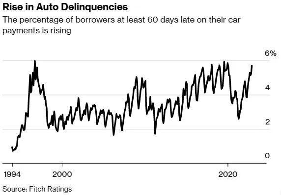 根据(Fitch Ratings)最新数据统计,去年12月逾期60天未能偿还汽车贷款的不良借款人占比达到了5.67%,高于2021年4月的2.58%,以及2009年经济危机时的5.04%。