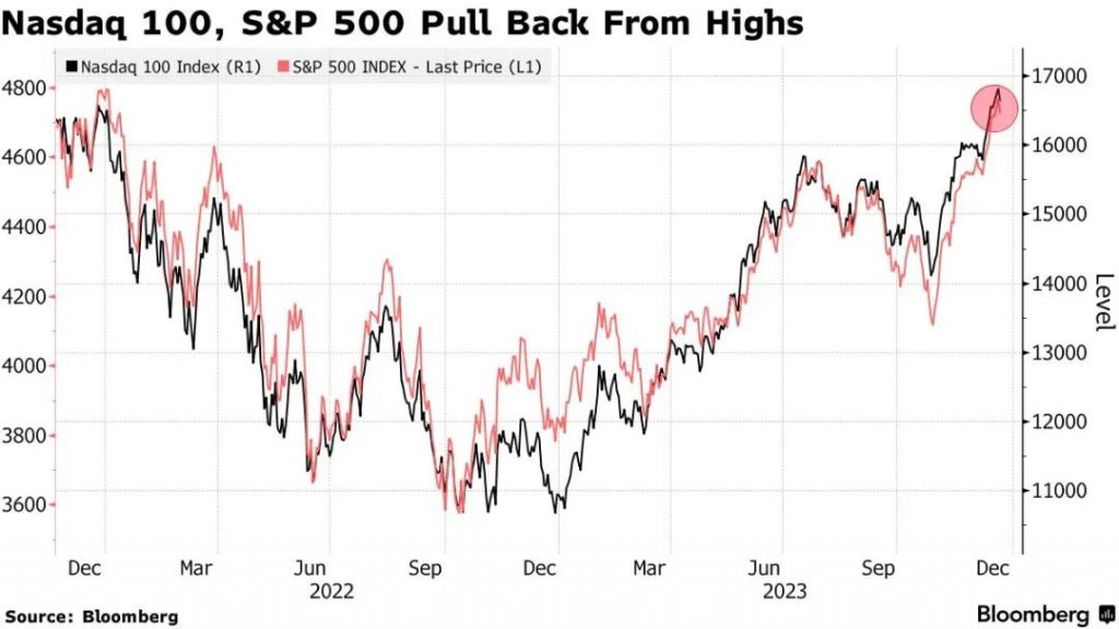 纳斯达克100指数下跌最多1.1%,标普500指数也回调超过1%