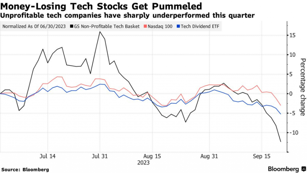 随着更多投资者选择国债,估值偏高的科技股票则一路下跌