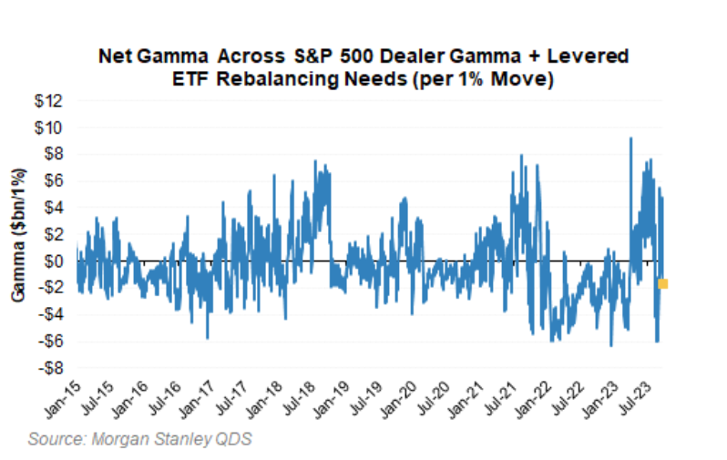 摩根士丹利交易员估算,如果市场下跌1%,他们可能还会减仓$70亿股票。如果跌幅达到2%,他们则会清仓$180亿。