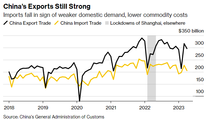 经济学家认为,今年全球利率激增,商品库存水平较高,中国商品出口总额的涨势很可能放缓。