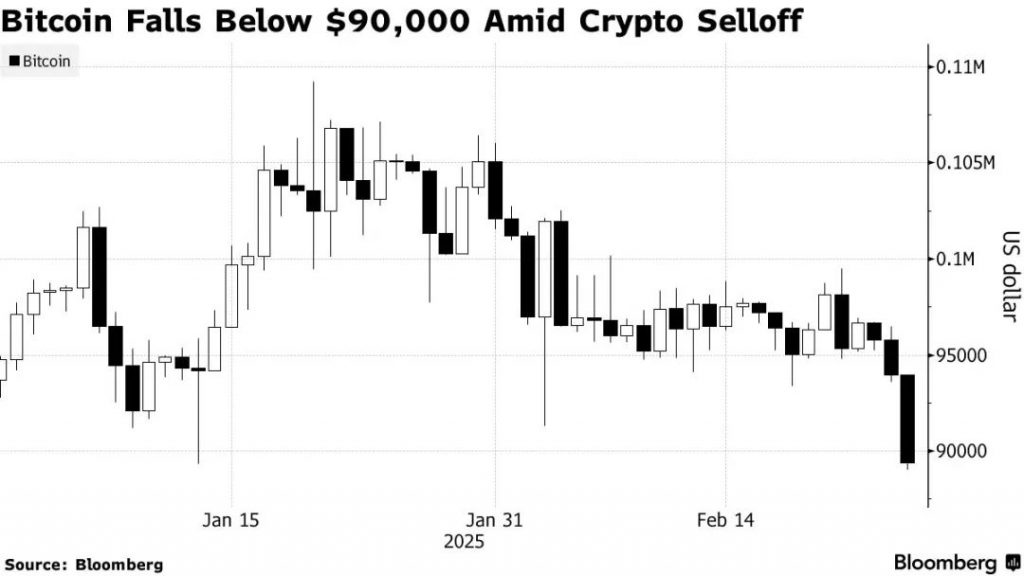 来源:Bloomberg – Bitcoin Slides Below $90,000 as Crypto Selloff Gathers Steam