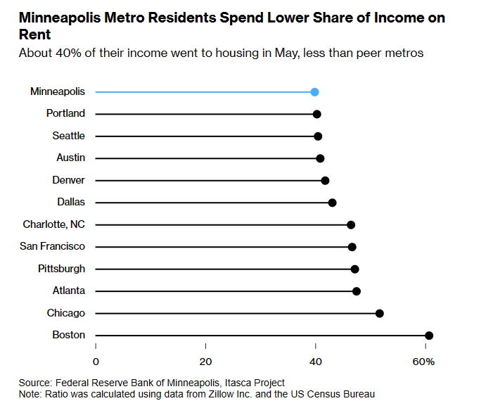 今年5月,美国明尼阿波利斯成为了首个将通胀率控制回2%的城市——当月,“双子城”的通胀率跌至1.8%,低于美国全部其他地区。