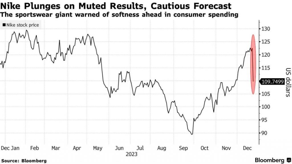 惨淡的财报公布后,耐克的股价暴跌2022年9月以来最多的12%