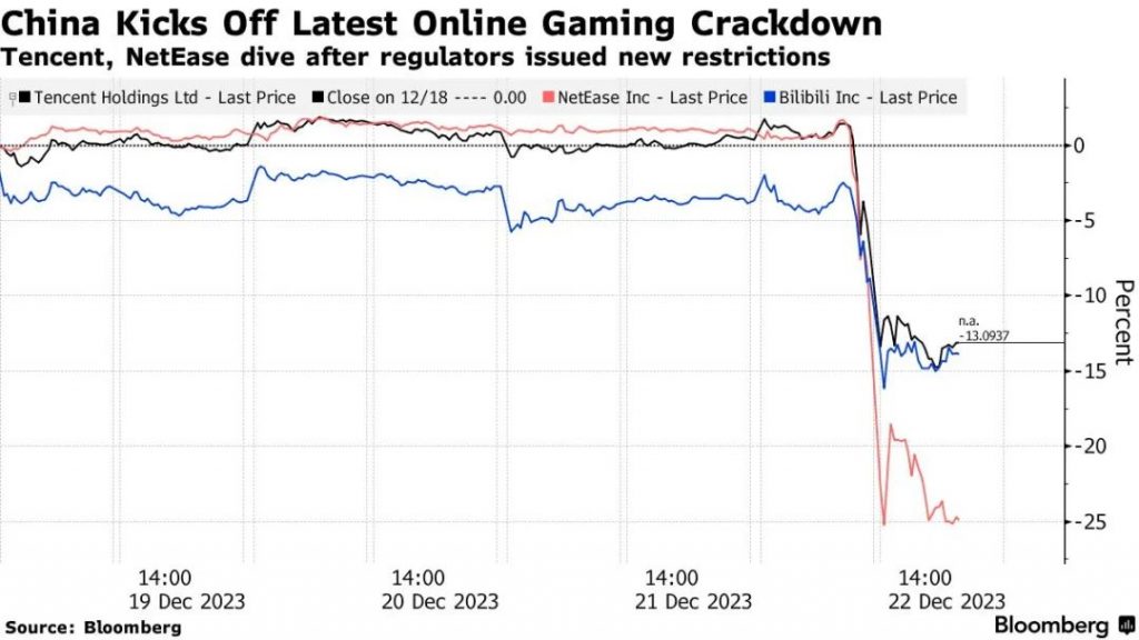 消息一出,腾讯以及其他游戏巨头的股票遭到了抛售,市值总计蒸发$800亿美元,投资者担心政府又将开始打压游戏行业。
