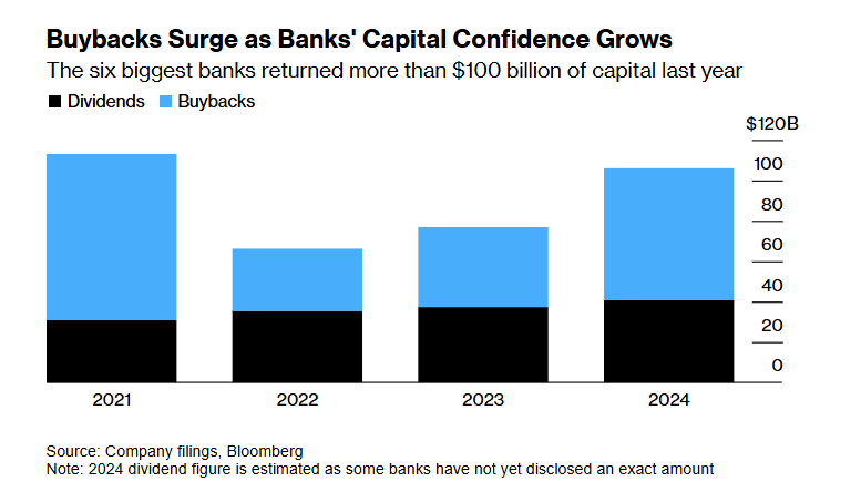 来源:Bloomberg – Banks Hand $100 Billion to Shareholders, Most Since 2021