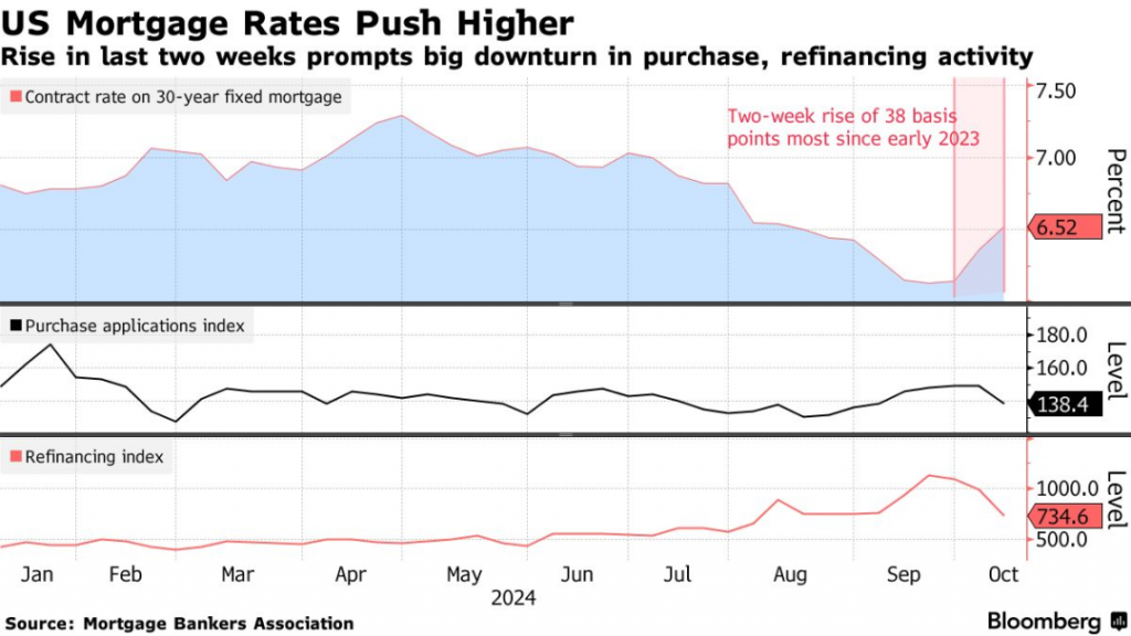 来源:Bloomberg – US Mortgage Rates Climb to 6.52%, Highest Since Early August