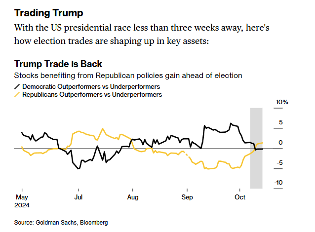 距离美国大选还有不到3周的时间,卡玛拉·哈里斯和特朗普的竞争依旧非常激烈。不过,越来越多的交易员们,开始为特朗普赢得选举的情况做准备和布局。