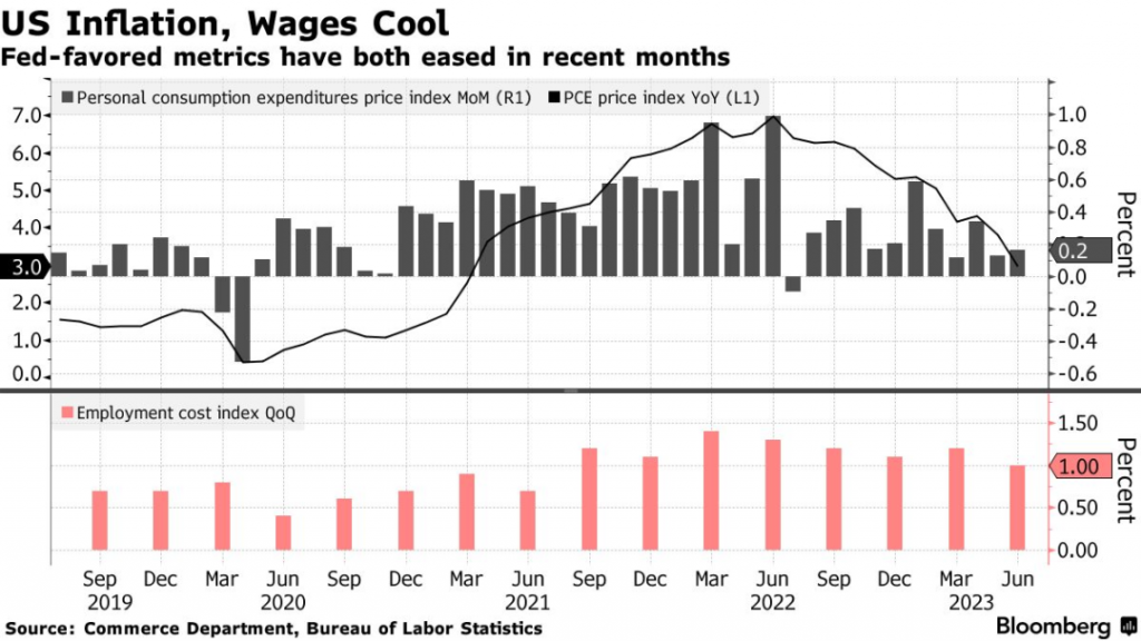 来源:Bloomberg – Key US Inflation, Wage Measures Cool in Boost for Soft Landing
