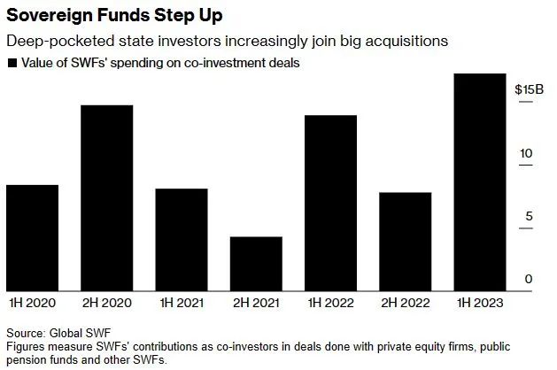 在高利率的环境下为了节约成本,私募公司被迫减少杠杆倍数,这也意味着LBO的回报率会下跌。而主权基金则对私募投资越发感兴趣,双方迎来了互惠互利的好时机。