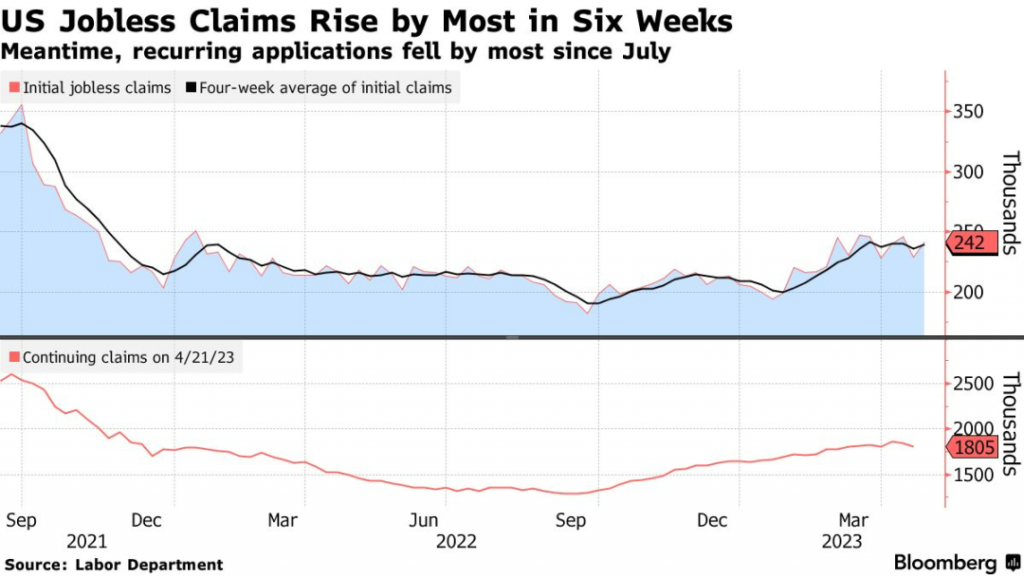 美国劳工部今天发布的数据显示,截至4月29日的一周内,初请失业金人数上涨1.3万人至24.2万人,创下了6周以来最大涨幅,略超过经济学家预期。