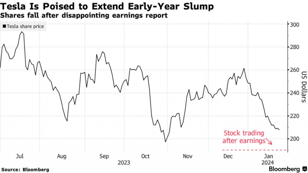 2024年初至今,特斯拉股价已经下跌超过16%,创下历史最烂开局