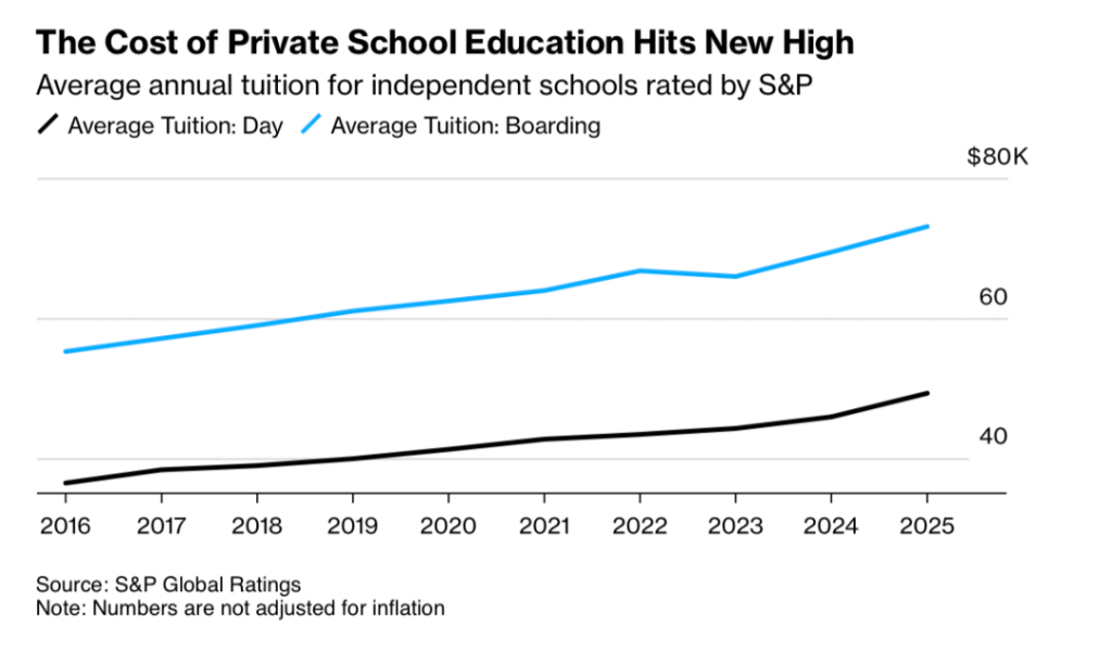 来源:Bloomberg – US Private School Tuition Nears $50,000 as Inflation Lifts Costs