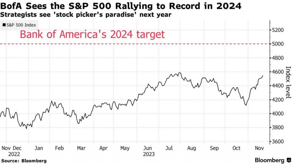 来源:Bloomberg – Bank of America Sees S&P 500 Hitting Record 5,000 Next Year