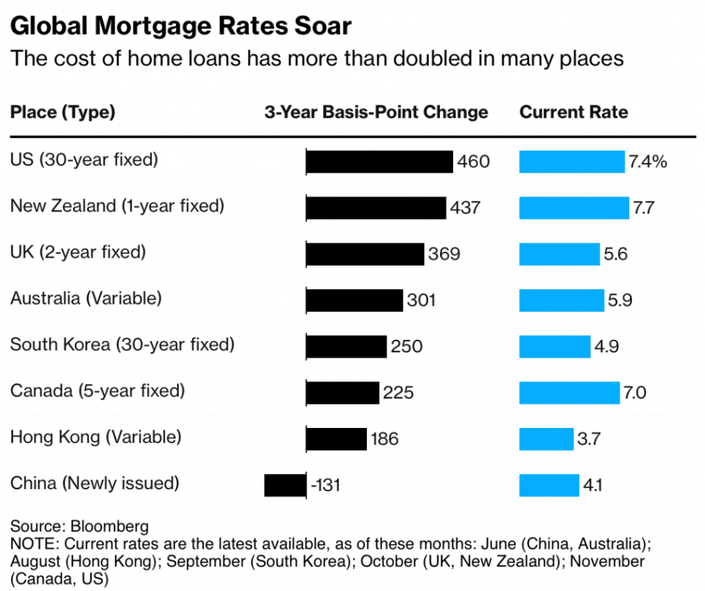 来源:Bloomberg – Higher Interest Rates Are Shattering Housing Dreams Around the World