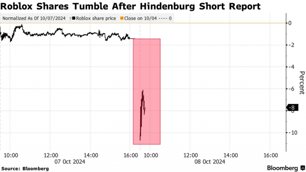 来源:Bloomberg – Roblox Tumbles as Hindenburg Bets Against Gaming Platform