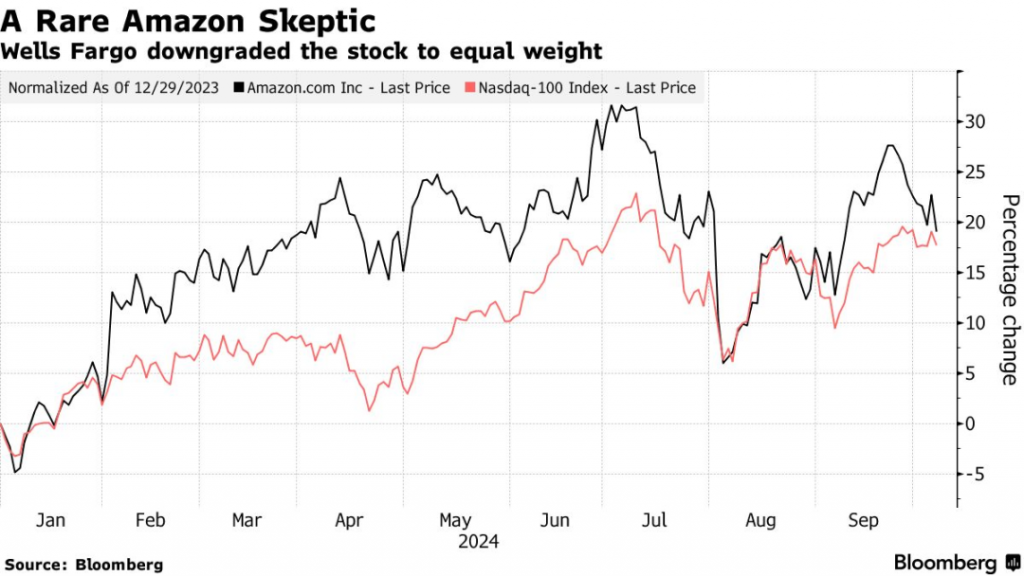 本周一,亚马逊股价下跌,因为富国银行罕见地下调了其评级。