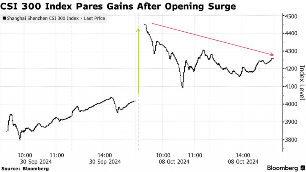 来源:Bloomberg – China’s Stock Euphoria Cools as Traders Reassess Stimulus Bets