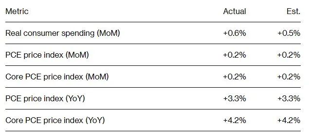 来源:Bloomberg – Fed’s Preferred Inflation Gauges Rise Modestly, Spending Jumps