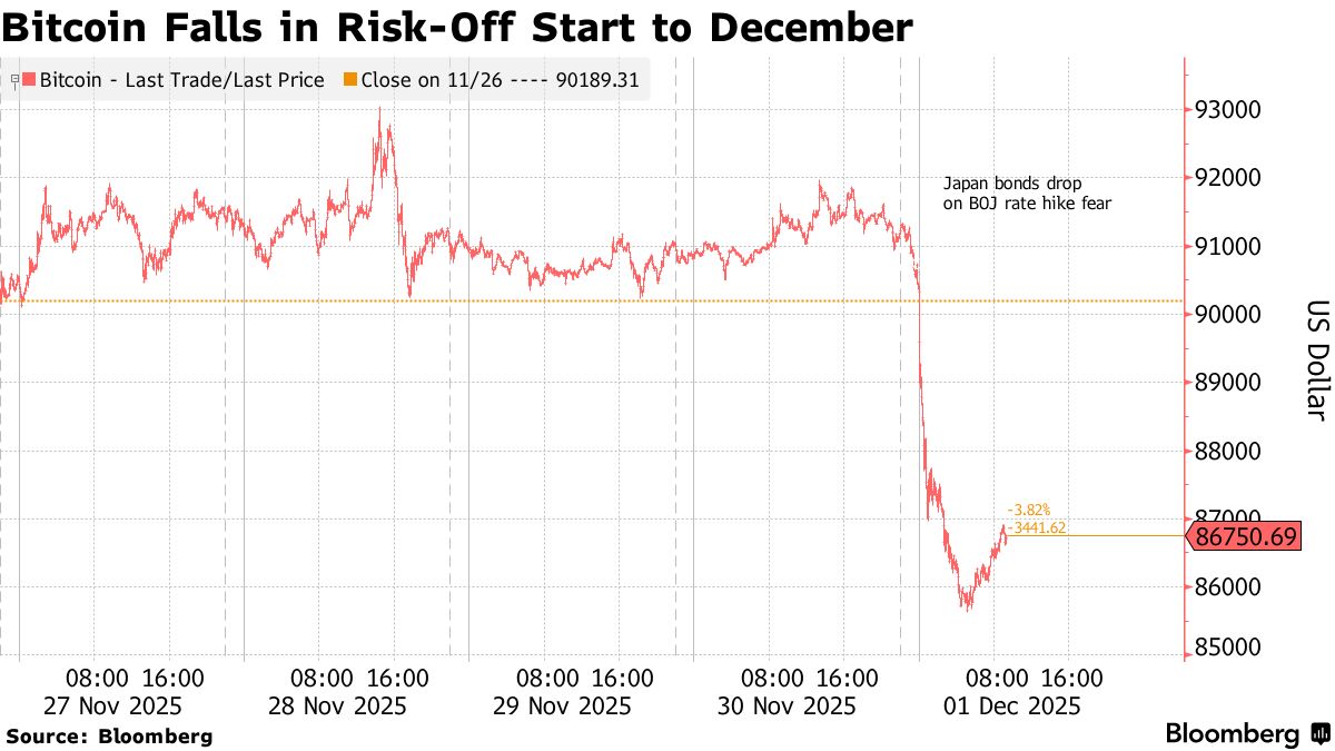 Bloomberg – Bitcoin Plunges to Below $85,000 in Risk-Off Start to December
