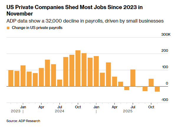 Bloomberg – Payrolls at US Companies Fall by Most Since 2023, ADP Says