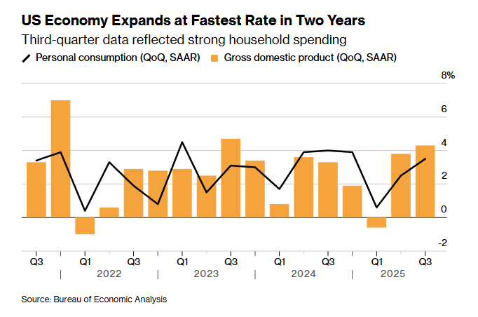 —— US GDP Grows at 4.3% in Third Quarter, Fastest Pace in Two Years; Citadel to Return $5 Billion in Profits as AUM Settles at $67 Billion; Trump Administration to Begin Wage Garnishment for Student Debt Defaults; Private Credit Firms Snapped Up $136 Billion in Consumer Debt; Saks Global Weighs Bankruptcy Ahead of $100 Million Debt Deadline; Influx of Luxury Apartments Drives Down Rents in Major US Cities