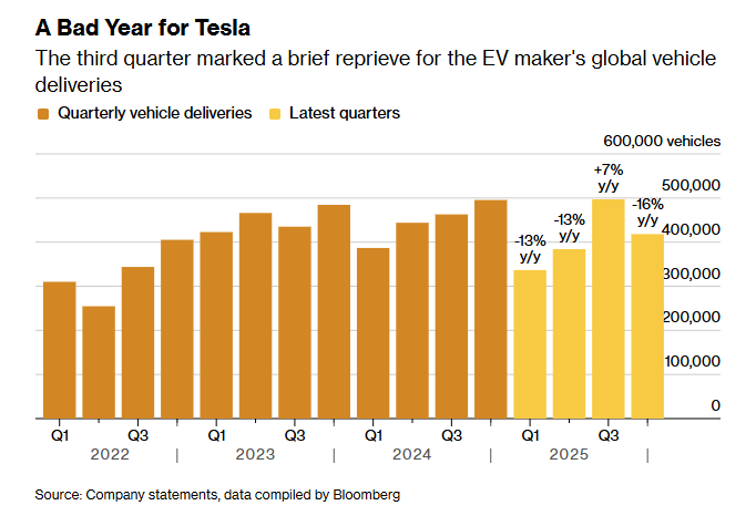 4. Tesla Sales Fall for Second Year as BYD Takes Global Annual Lead