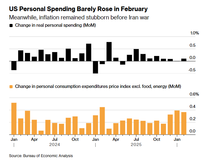 Bloomberg – US Consumer Spending Barely Rose, Inflation Lingered Pre-War