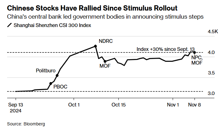 This week, China’s central bank provided local governments with ¥10 trillion in funds but did not announce new stimulus measures, primarily to retain operational flexibility in anticipation of a potential trade war under Trump’s presidency.