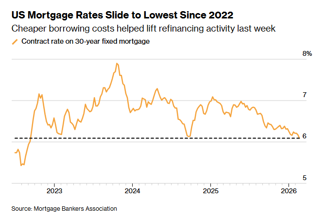Bloomberg – US Mortgage Rates Reach Lowest Since 2022, Spurs Refinancing